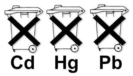 Batterien sind mit dem Symbol einer durchgekreuzten Mülltonne (s. u.) gekennzeichnet. Dieses Symbol weist darauf hin, dass Batterien nicht in den Hausmüll gegeben werden dürfen. Bei Batterien, die mehr als 0,0005 Masseprozent Quecksilber, mehr als 0,002 Masseprozent Cadmium oder mehr als 0,004 Masseprozent Blei enthalten, befindet sich unter dem Mülltonnen-Symbol die chemische Bezeichnung des jeweils eingesetzten Schadstoffes – dabei steht "Cd" für Cadmium, "Pb" steht für Blei, und "Hg" für Quecksilber.“