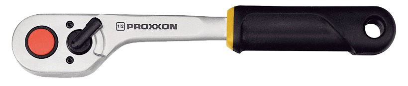 Mit makelloser Verzahnung: Mehrere der 72 Zähne rasten gleichzeitig ein und übertragen ein extremes Drehmoment. Umschalthebel für Rechts- und Linkslauf. Entriegelungs-Mechanismus: Lösen der Einsätze durch Knopfdruck. Kopf und Schaft aus einem Stück CrV-Stahl geschmiedet. 2x vernickelt und matt-verchromt. Griff aus öl- und säurefestem TPR (Thermoplastic Rubber) mit praktischer Bohrung zum Aufhängen.