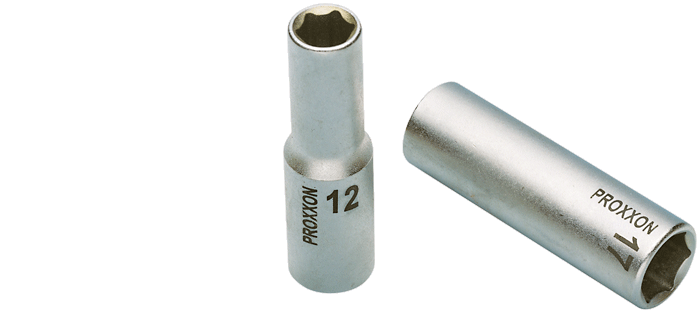| 1/2'' - Tiefbett-Steckschlüsseleinsatz Für lang überstehende Gewindebolzen. Hergestellt aus CrV-Stahl. Gesamtlänge 79 mm. | 10 mmNO 23 355 11 mmNO 23 356 12 mmNO 23 357 13 mmNO 23 358 14 mmNO 23 359 15 mmNO 23 360 16 mmNO 23 361 17 mmNO 23 362 18 mmNO 23 363 19 mmNO 23 364 21 mmNO 23 365 22 mmNO 23 366 24 mmNO 23 367 |