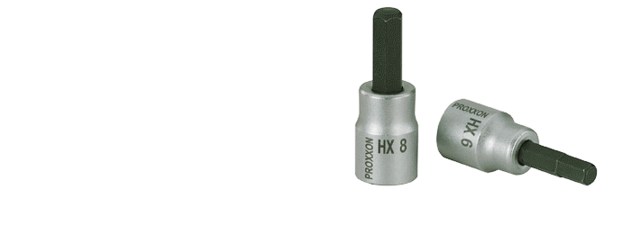 | 3/8'' - Innensechskant-Einsatz, 50 mm Klinge aus Chrom-Silicium-Mangan-Molybdän-Stahl. Sockel aus CrV-Stahl. | HX 4 mmNO 23 575 HX 5 mmNO 23 576 HX 6 mmNO 23 578 HX 7 mmNO 23 579 HX 8 mmNO 23 580 HX 9 mmNO 23 577 HX 10 mmNO 23 581 HX 11 mmNO 23 573 |