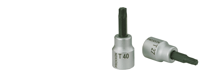 | 3/8'' - TX-Einsatz, 50 mm Sechskant aus Chrom-Silicium-Mangan-Molybdän-Stahl. Sockel aus CrV-Stahl. | TX 10NO 23 583 TX 15NO 23 582 TX 20NO 23 584 TX 25NO 23 585 TX 27NO 23 586 TX 30NO 23 587 TX 40NO 23 588 TX 45NO 23 589 TX 50NO 23 590 |