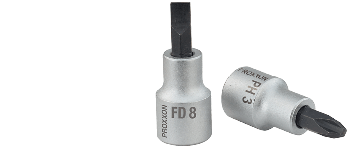 | 1/2'' - Flat-blade screwdriver bits, 55mm Chrome-silicon-manganese-molybdenum steel. CrV steel socket. | FD 8mmNO 23 462 FD 10mmNO 23 464 |