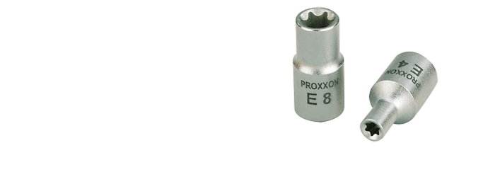 | 1/4'' - Female TX (TTX) sockets Made of CrV steel. Total length 25mm. | E 4NO 23 788 E 5NO 23 790 E 6NO 23 792 E 7NO 23 793 E 8NO 23 794 E 10NO 23 796 |
