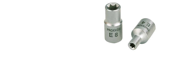 | 1/4'' - Female TX (TTX) sockets Made of CrV steel. Total length 25mm. | E 4NO 23 788 E 5NO 23 790 E 6NO 23 792 E 7NO 23 793 E 8NO 23 794 E 10NO 23 796 |