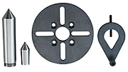 This includes: 1 face plate, 2 fixed centres (MK 2 and MK 1/short) and 1 drive dog. Packed in a wooden box.