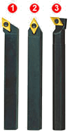 One each cutter for 60 degree (metric) and 55 degree (Whitworth) inside threads, 1.3mm - 2.65mm and 4mm. Shaft of Ø 6mm. Length 95mm. The cutters are held by a tool holder (9 x 9mm) that mounts to the tool post of either PD 230/E, PD 250/E or PD 400. Comes in wooden box with sliding lid.