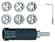With holder Ø 10mm for mounting in the tailstock drill chuck of the lathe. The holder is held by hand while cutting the threads. Neatly packed in wooden box with sliding lid.
