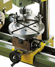 Incudes column (35 x 400mm), mounting bracket and fastening screws. For mounting on previous models of the PD 400 two tapped holes need to be drilled into the lathe's bed. Future PD 400 will come equipped with these tapped holes. The lathe's top slide is replaced with the table (supplied) of 110 x 70mm, with 3 T-slots 12 x 6 x 5mm. The lathe now functions as a compound table, with X-Y travel being longitudinally and cross-wise respectively. The mill/drill head is identical to the miller FF 230. Three collets of sizes 6 - 8 and 10mm are included.