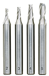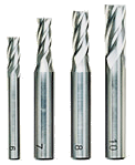 4 cutters Ø 6 - 7 - 8 and 10mm. Four flute design according to DIN 844. Shafts 6 and 10mm respectively. Made of HSS-Co5. Comes in wooden box with sliding lid.