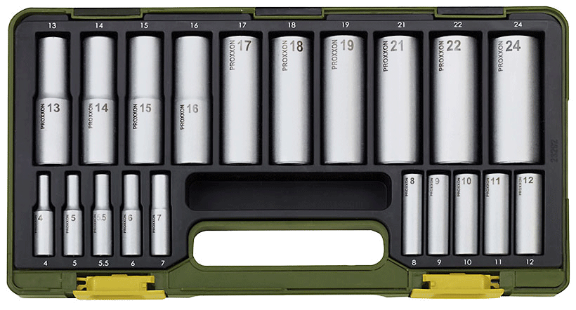 Proxxon 23286. Steckschlüsselsatz mit Knüppelratschen 1/4" und 1/2", 65-tlg.