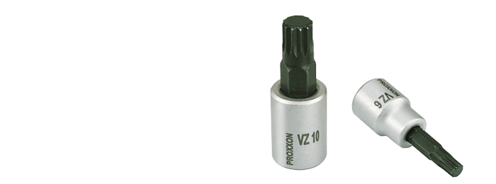 | 3/8'' - Vielzahn-Einsatz, 50 mm Für XZN-Schrauben. Klinge aus Chrom-Silicium-Mangan-Molybdän-Stahl. Sockel aus CrV-Stahl. | VZ 5NO 23 628 VZ 6NO 23 629 VZ 8NO 23 631 VZ 10NO 23 633 |